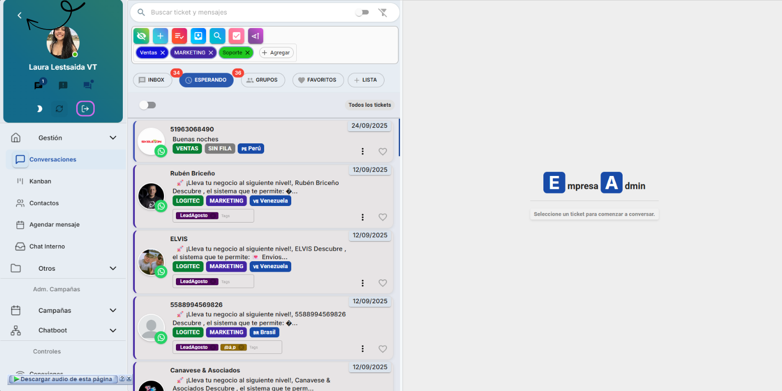 Como comenzar ➡️Como cerrar sesión en Wasbot